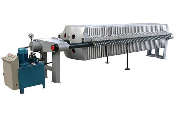 隔膜壓濾機(jī),隔膜壓榨壓濾機(jī)由隔膜板和廂式濾板排列組成濾室,在輸料泵的壓力作用下將漿料輸入濾室,通過過濾介質(zhì)(濾布)將濾料中的固體和液體分離,當(dāng)漿料中的固體形成餅后,再向隔膜通入空氣,對濾室內(nèi)的固體充分壓榨,降低含水率。對于粘性物料的過濾及對含水率要求較高的用戶,此機(jī)更有其獨(dú)特的特性。
